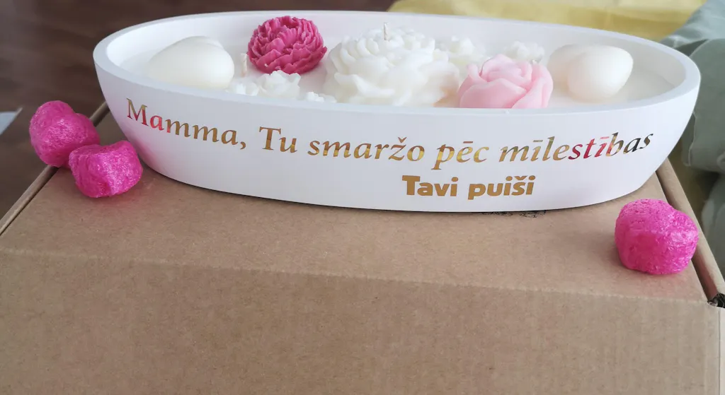 Aromātiska sojas vaska svece FLORA ovālā ģipša trauciņā | aromāts pēc izvēles | personalizējama